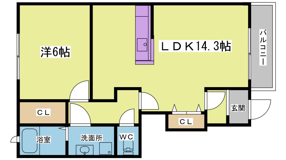 | 築年月 | 2006年8月 | 間取り | 1LDK( LDK14.3畳/洋室6畳 ) | 専有面積 | 48.19m2 |