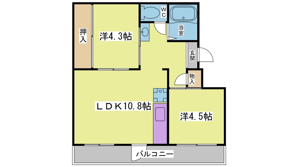 2LDK( LDK10.8畳/洋室4.5畳/洋室4.3畳 ) |
