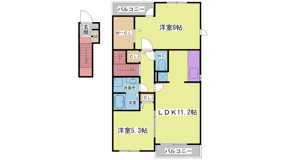 2LDK( LDK11.2畳/洋室8畳/洋室5.3畳 ) |