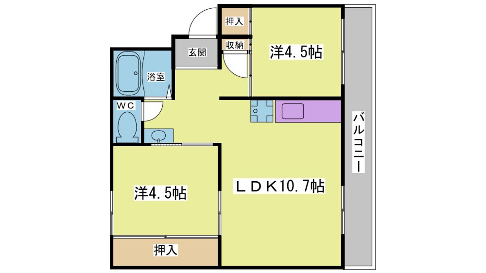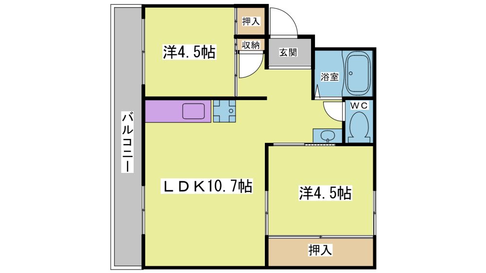2LDK( LDK10.7畳/洋室4.5畳/洋室4.5畳 ) |