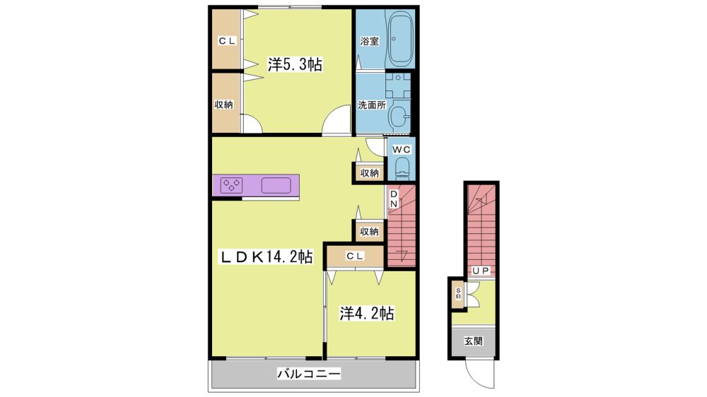 1LDK( LDK13.9畳/洋室5畳 ) |