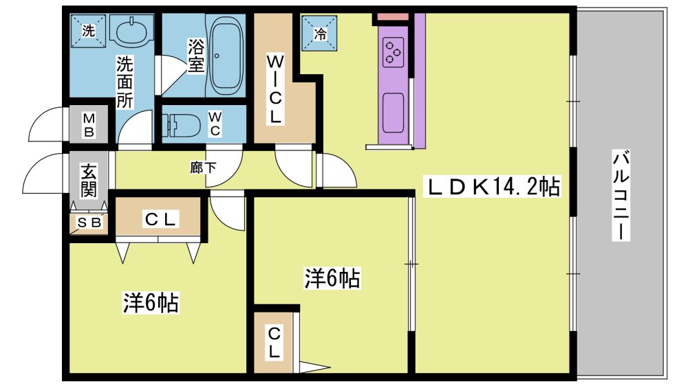 2LDK( LDK14.3畳/洋室6畳/洋室6畳 ) |
