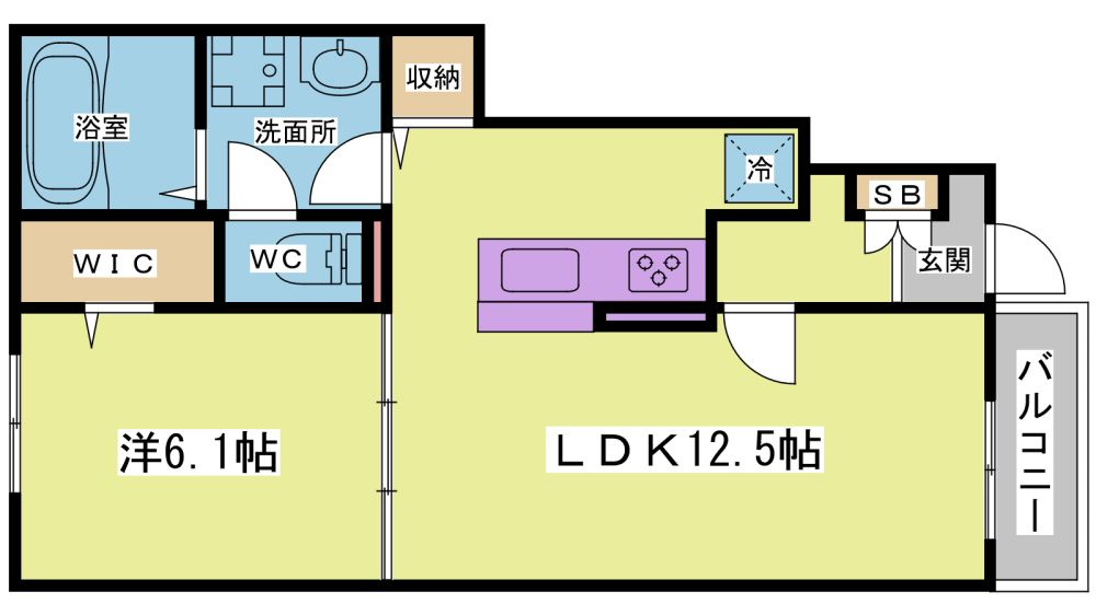 1LDK( LDK12.5畳/洋室6.1畳 ) |