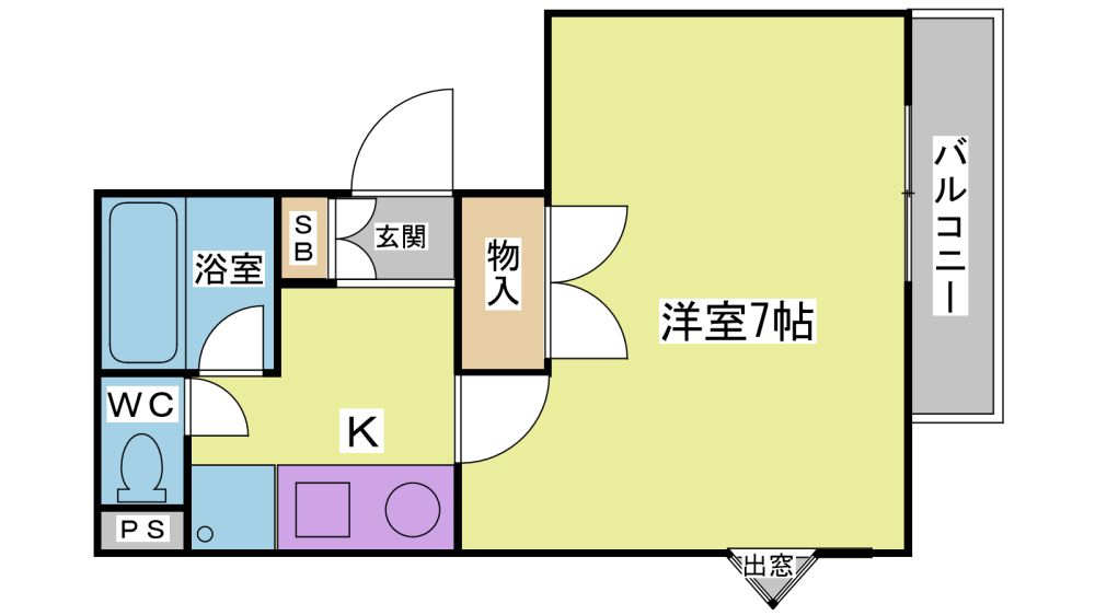 1K( 洋室7畳/K2畳 ) |