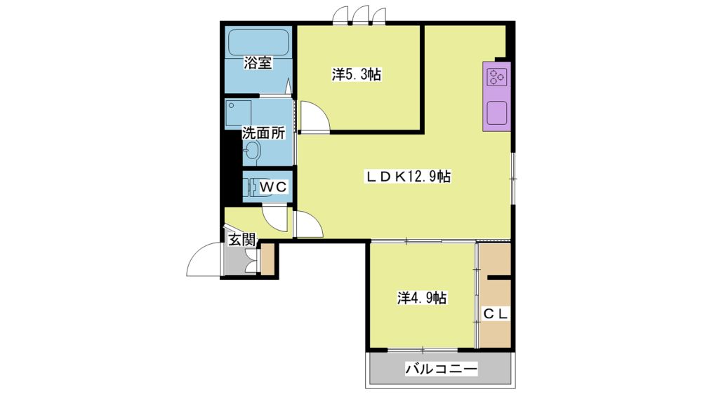 2LDK( LDK12.9畳/洋室5.3畳/洋室4.9畳 ) |